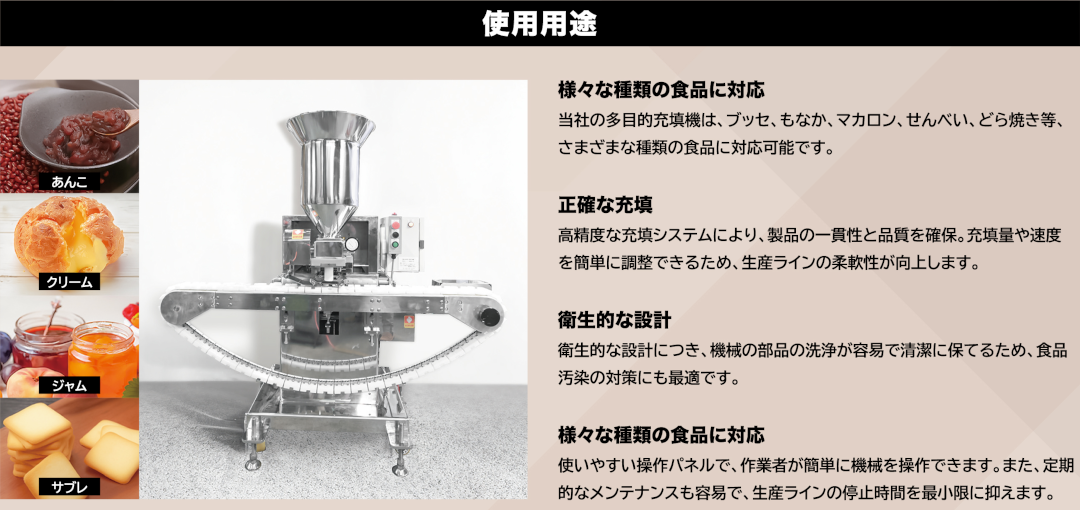 餡物の定量充填に関しましては他社に追随を許さない覚悟でございます。